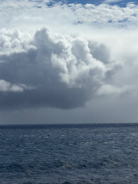 Sitting on the edge of the lava-formed cliff, we looked up at a cloud revealing the divine unity of two beings coming together as one offering.